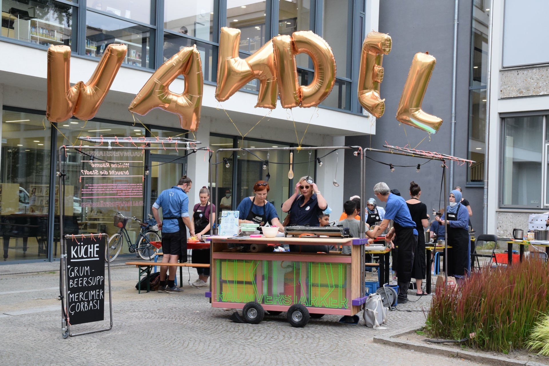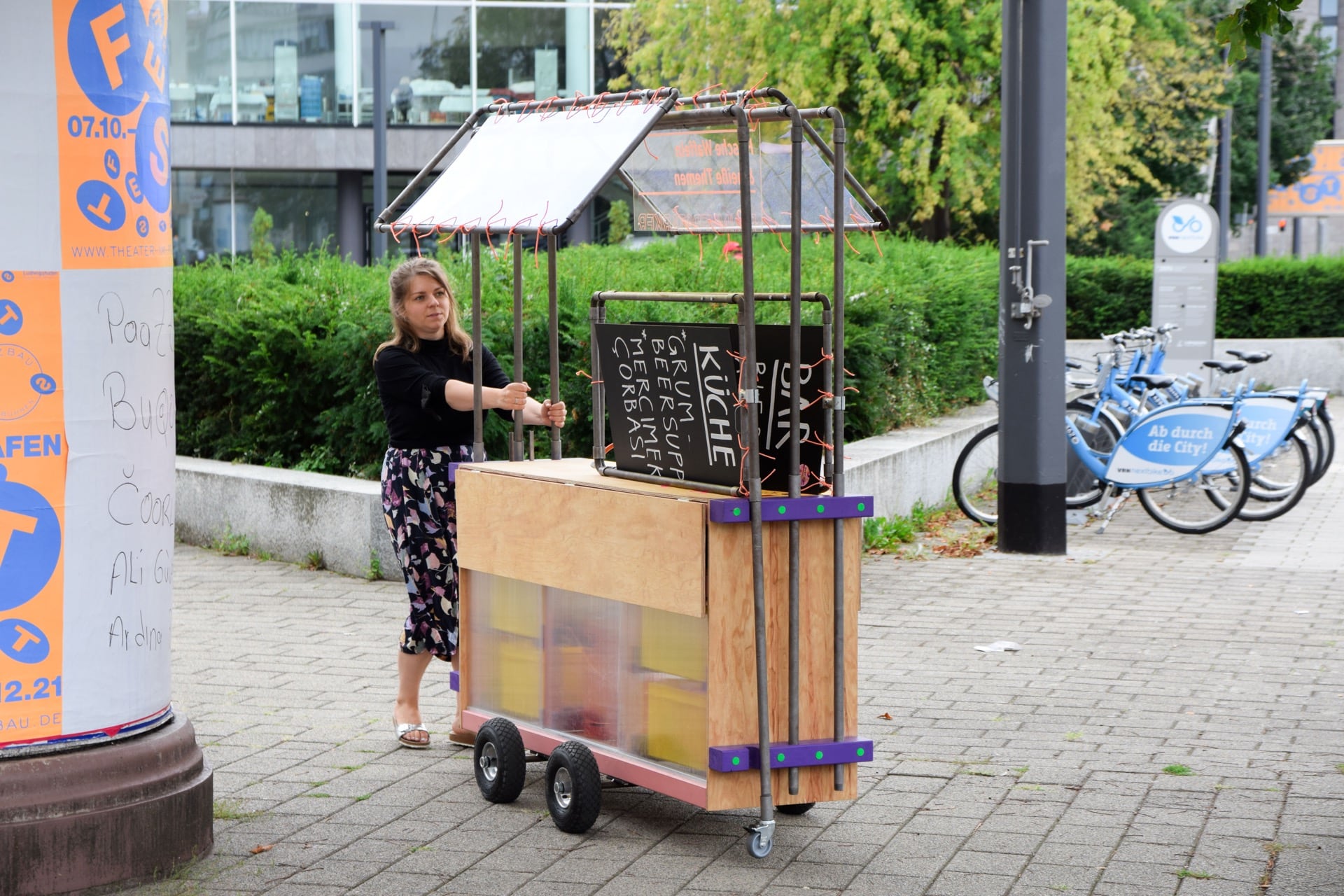 Mit der mobilen Stadtskulptur Raumverstärker begaben wir uns auf die Suche nach Potentialen, Qualitäten und neuen Nutzungen öffentlicher Räume und Brachflächen in der Ludwigshafener Innenstadt. Wir schafften Übergänge, neue Zukünfte und temporäre Raumpotentiale, welche neue und ungewohnte Perspektiven eröffneten. Am Hauptbahnhof Ludwigshafen konnten wir temporär eine neue Nutzung des Ortes produzieren, Potentiale verdeutlichen und Vorhandenes verstärken. Im Gespräch erzählten die Besucher:innen den Bahnhof neu und verliehen ihm ein alternatives Narrativ.