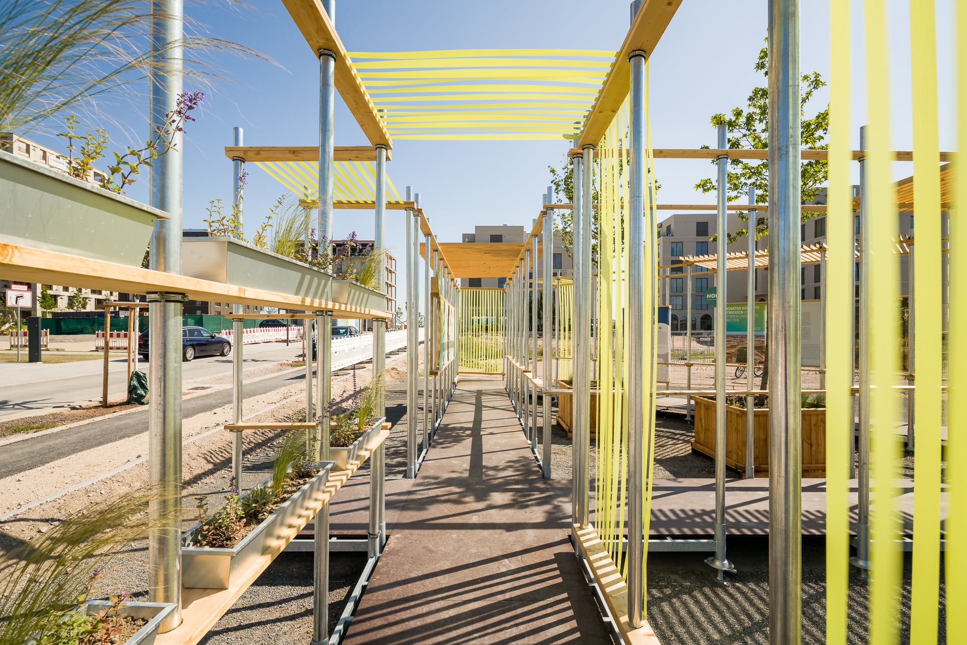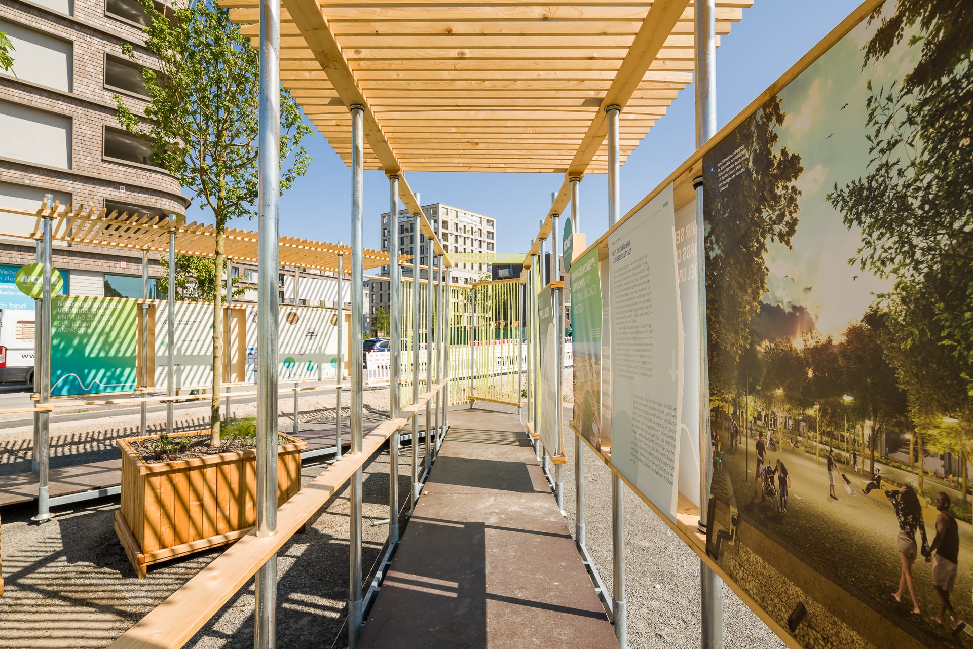 Fünf Pavillons zu Architektur, Ökologie, Soziales, Mobilität und Städtebau stellten durchdachte Konzepte zur Klimafolgenanpassung vor. Unter Einsatz handelsüblicher Rungenpaletten und Einsteckrungen wurden flexible Architekturen gestaltet, und die verwendeten Baumaterialien konnten kreislaufgerecht wiederverwendet werden.